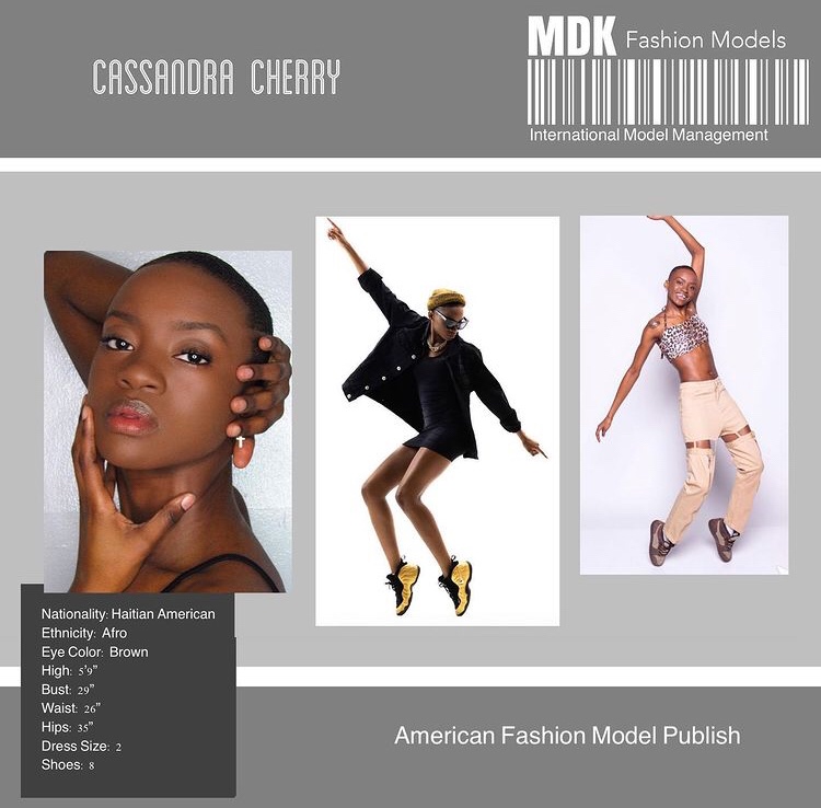 Cassandra is reconigzed by the model agencies MDK.Fashion Models